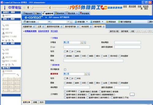 與其說是外籍勞工保護(hù)專案,其實(shí)也是雇主申訴專線,本專案須整合中華電信代理的COSMO軟體電話功能,及導(dǎo)入服務(wù)及客服模組,當(dāng)電話來電時(shí),客服員案下軟體電話接聽時(shí),同時(shí)利用來電電話搜尋并帶入當(dāng)通來電者資料及歷史申訴案件至畫面上,如果需要建立申訴案件,也可以使用服務(wù)請(qǐng)求將申訴案件儲(chǔ)存于系統(tǒng)中,或是需要咨詢答覆時(shí),也只要將關(guān)鍵字輸入至知識(shí)庫的查詢方案中,在短時(shí)間找到答案馬上做回覆,讓作業(yè)更有效率。本專案角色分為接線服務(wù)員、業(yè)務(wù)督導(dǎo)、行政管理及全省25個(gè)縣市政府機(jī)關(guān)人員。接線服務(wù)員是第一線的電話服務(wù)窗口,接電話同時(shí)須視電話內(nèi)容新增服務(wù)請(qǐng)求,并做判斷是否可以即時(shí)線上結(jié)案,如果不行結(jié)案,則可使用該服務(wù)請(qǐng)求(派案單)下新增任務(wù),將任務(wù)分配至全省25個(gè)縣市政府機(jī)關(guān)人員,各縣市人員收到任務(wù)(回覆單),也可以活動(dòng)(紀(jì)錄單)線上回覆派案處理狀況,并做結(jié)案,系統(tǒng)可依照設(shè)定的審核流程請(qǐng)求同意結(jié)案。