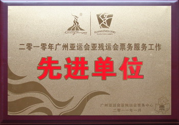 誠(chéng)伯榮獲廣州亞運(yùn)會(huì)亞殘運(yùn)會(huì)票務(wù)中心“先進(jìn)單位”稱號(hào)