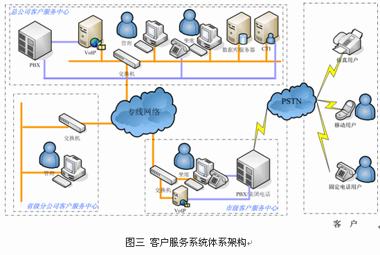 為了幫助企業(yè)支撐其全國業(yè)務的開展,企業(yè)需要一個定位清晰、分工明確、立體的客戶服務業(yè)務軟件,賽迪呼叫針對這樣的需求,提出包括總公司、省分公司、市支公司三個層次客戶服務業(yè)務軟件的整體系統(tǒng)架構。下面就是這個體系的架構圖: