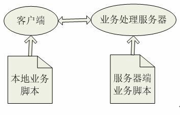 整個(gè)業(yè)務(wù)數(shù)據(jù)和業(yè)務(wù)處理都由XML配置管理,系統(tǒng)業(yè)務(wù)被分成本地業(yè)務(wù)邏輯和服務(wù)器端業(yè)務(wù)邏輯,客戶(hù)端通過(guò)提取本地業(yè)務(wù)邏輯腳本中的數(shù)據(jù)處理業(yè)務(wù)邏輯,業(yè)務(wù)處理服務(wù)器通過(guò)提取服務(wù)器端業(yè)務(wù)邏輯腳本中的數(shù)據(jù)訪(fǎng)問(wèn)數(shù)據(jù)庫(kù),并將數(shù)據(jù)庫(kù)返回結(jié)果發(fā)往客戶(hù)端。本地業(yè)務(wù)邏輯和服務(wù)器端業(yè)務(wù)邏輯之間的邏輯關(guān)系是通過(guò)一套配置腳本維護(hù)。如圖: