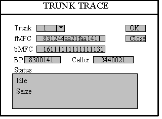 從trank下拉式選擇框中選中要跟蹤的中繼號,擊“OK”按鈕,則可以從status框中顯示中繼當前的狀態(tài),只顯示新出現(xiàn)的狀態(tài)轉變,對過去的狀態(tài)不顯示。