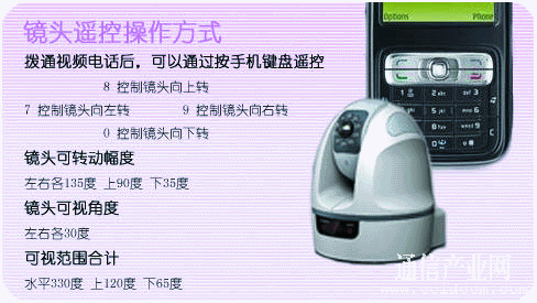 前端攝像頭可以上下左右靈活轉(zhuǎn)動,隨意安放在家中、商鋪中的合適位置。用戶的手機無需安裝客戶端軟件,即可通過視頻電話直接呼叫前端攝像頭,然后通過12個數(shù)字鍵控制前端云臺轉(zhuǎn)動、變焦、錄像、回放等操作。
