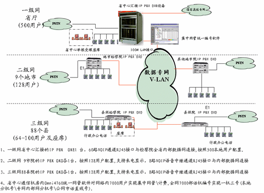 2006年1月18日,中國(guó),上海,――全球企業(yè)通訊解決方案領(lǐng)導(dǎo)者阿爾卡特(巴黎:CGEP.PA,紐約股市:ALA)日前宣布,貴州省檢察院經(jīng)過全面審查,最后選擇阿爾卡特為其部署覆蓋省、市、縣三級(jí)98個(gè)檢察院的全省 IP PBX語(yǔ)音交換專網(wǎng),實(shí)現(xiàn)語(yǔ)音、數(shù)據(jù)和視頻三網(wǎng)合一的應(yīng)用。這個(gè)項(xiàng)目將在檢察院系統(tǒng)現(xiàn)有成熟的全省數(shù)據(jù)網(wǎng)絡(luò)基礎(chǔ)上進(jìn)行VOIP語(yǔ)音專網(wǎng)建設(shè)。