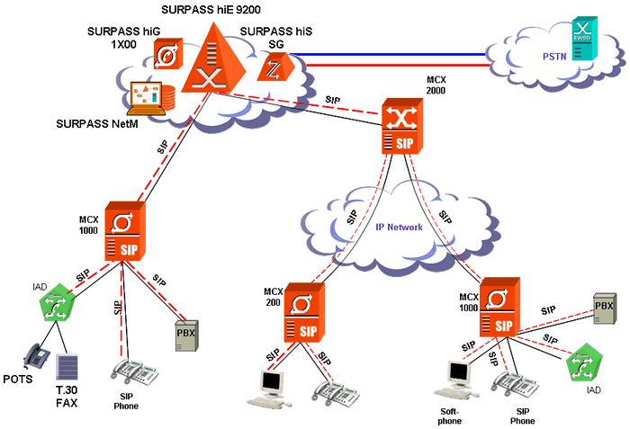 - MCX2000——集中路由控制服務(wù)器,提供IP CENTREX功能,支持多臺(tái)MCX200或MCX1000的互通,集中控制跨MCX200或MCX1000的呼叫。典型應(yīng)用場(chǎng)景是與MCX200/1000混合組網(wǎng),構(gòu)成企業(yè)廣域IP語(yǔ)音網(wǎng)絡(luò)或NGN大規(guī)?蛻艚尤刖W(wǎng)絡(luò)。