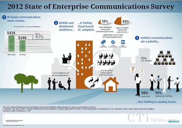 企業(yè)員工移動性的增加推動了向云方案的轉移,而IT人員有限的技能妨礙了統(tǒng)一通信的部署