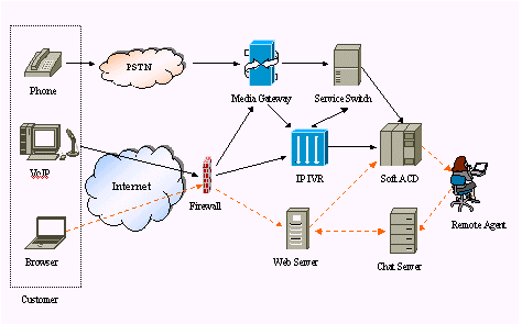 FineSupportIP Contact Center基于先進(jìn)的LodeSoft iAfx體系架構(gòu),完全統(tǒng)一來(lái)自電話和Internet的客戶服務(wù)請(qǐng)求。來(lái)自PSTN的電話語(yǔ)音首先經(jīng)由媒體網(wǎng)關(guān)轉(zhuǎn)換為IP電話數(shù)據(jù)流,具有完全分布式特性,能夠幫助江蘇網(wǎng)通實(shí)現(xiàn)多點(diǎn)的、虛擬統(tǒng)一的客戶服務(wù)中心的目標(biāo);其基于VoIP技術(shù)的軟件ACD(自動(dòng)呼叫分配器)根據(jù)呼叫類(lèi)型、服務(wù)人員忙閑狀態(tài)、可定制的分配策略進(jìn)行呼叫分配;基于Voice XML技術(shù)的IP-IVR單元,可以靈活地定義自動(dòng)語(yǔ)音服務(wù);系統(tǒng)另一顯著特點(diǎn)是系統(tǒng)遵循開(kāi)放性原則,可集成第三方硬件和第三方業(yè)務(wù)軟件,使網(wǎng)通逐步實(shí)現(xiàn)統(tǒng)一、全面的客戶服務(wù)體系。