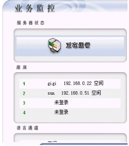 系統(tǒng)管理員能夠通過(guò)web監(jiān)控所有電話線、座席、系統(tǒng)資源的占用情況;能夠查看、統(tǒng)計(jì)呼叫次數(shù)、呼入接通率等參數(shù)指標(biāo)。