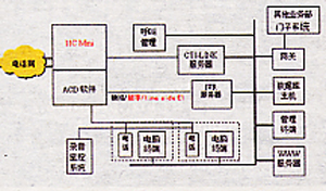 ● 錄音監(jiān)控系統(tǒng):使用Meridian 2216 ACD數(shù)字話機(jī)上的錄音端口,接入模擬語音卡或直接接入PC聲霸卡,進(jìn)行錄音監(jiān)控。