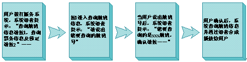 - 航班信息查詢是航空語音服務(wù)系統(tǒng)可加載的業(yè)務(wù)之一,還可以同時加載例如票務(wù)查詢與預(yù)定等業(yè)務(wù),在用戶通過語音預(yù)定后,可以選擇將票務(wù)信息通過短信或彩信發(fā)到手機(jī)上,從而實現(xiàn)電子訂票功能,減少了服務(wù)成本;