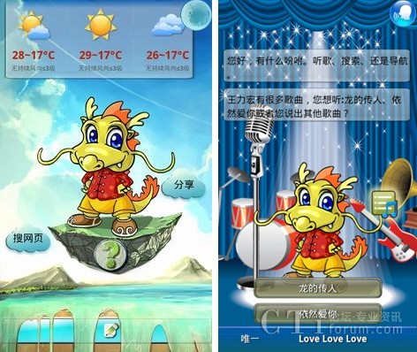 聰明、善解人意的小唐龍基于開放的Android操作系統(tǒng),在捷通華聲全球首個全方位智能人機(jī)交互(HCI)感知云-靈云平臺的支持下,會學(xué)習(xí),善思考,能說會聽,能寫會識。此次正式發(fā)布的小唐龍界面更加清新亮麗,令人耳目一新;獨(dú)一無二的語音與手寫全方位人機(jī)交互,讓用戶在任何情況下都可以無障礙的使用小唐龍;重新構(gòu)建設(shè)計(jì)的音樂播放的界面,增加歌詞顯示功能,讓用戶隨心所欲的添加、刪除、選擇、演唱歌曲;新聞播報清晰自然,流暢動聽,新聞內(nèi)容更加豐富,讓天下大事隨時都掌握在用戶手中;地圖查詢實(shí)現(xiàn)全國范圍方便快捷的導(dǎo)航、公交查詢、餐飲服務(wù);全國地區(qū)天氣預(yù)報等功能的完善,給用戶的生活帶來的極大的便利。全新小唐龍讓手機(jī)助手之名更加名副其實(shí)!