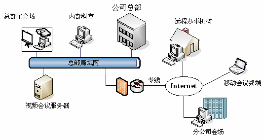 V2視頻會議系統的視頻采集分辨率達到640x480遠程工程管理需求,使專家可以清晰地看到遠程項目組傳回的圖像。支持ADSL,ISDN等各種寬帶接入,顯示幀率根據帶寬可調。在中鐵九局建立一個遠程會議室,通過電信寬帶接入到互聯網,也通過寬帶等多種形式接入到互聯網,通過互聯網訪問視頻會議服務器。通過V2