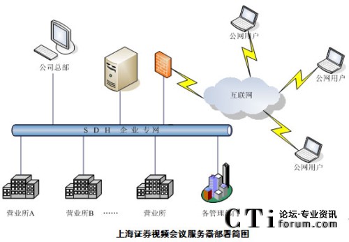 上海證券一直以來都重視IT在企業(yè)發(fā)展中的重要作用,公司成立了信息技術(shù)總部專門負(fù)責(zé)公司信息化平臺(tái)的建設(shè)與維護(hù)。2009年4月上海證券視頻會(huì)議項(xiàng)目進(jìn)入最終選型階段,經(jīng)過多次測(cè)試和評(píng)比,最終選用音視頻效果好,運(yùn)行穩(wěn)定,成熟度高的北京威速科技有限公司視頻會(huì)議產(chǎn)品V2 Conference視頻會(huì)議系統(tǒng)。2009年6月完成了項(xiàng)目實(shí)施部署。