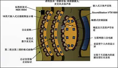 設(shè)計的獨具匠心之處還在于投影設(shè)備和攝像頭采用了分離的隱密安裝方式,因而所有與會者都完全呈現(xiàn)在屏幕上,不受任何限制地與各方交流。另外,由于采用整體環(huán)境設(shè)計,從地面到天花板均采用預制結(jié)構(gòu)和現(xiàn)場安裝,絕大多數(shù)情況下,系統(tǒng)安裝不需要特別的許可證,同時會議室的全部設(shè)施也可以隨企業(yè)遷址而重新安裝。