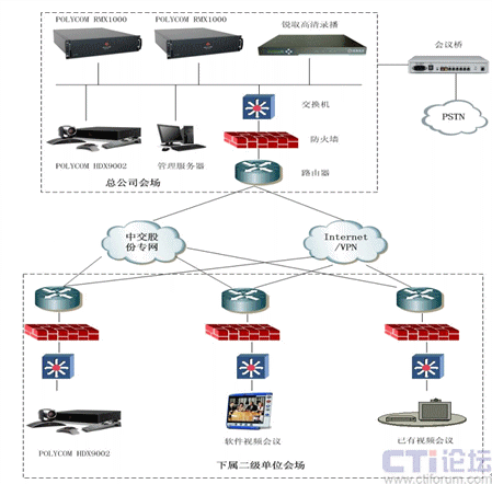 因為集團(tuán)的部分二級單位在前期已經(jīng)構(gòu)建了標(biāo)清的視頻會議系統(tǒng),而且使用的視頻終端的類型非常多,有Polycom VS系列終端、Polycom