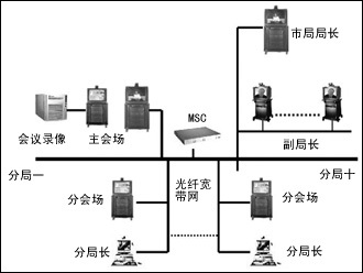 在每個分局和信息中心機房設(shè)置分會場,實現(xiàn)網(wǎng)絡(luò)視頻會議和遠程技術(shù)支持。分會場的會議終端設(shè)備選用VCON的會議室型柜式終端MediaConnect
