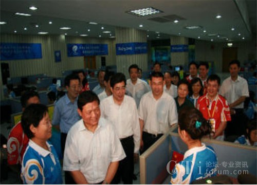 7月7日上午,正值奧運觀眾呼叫中心正式開通一周之際,北京奧組委主席、北京市市委書記劉淇一行前往觀眾呼叫中心皂君廟職場視察,在視察過程中,劉淇主席聽取了觀眾呼叫中心籌建和成立的過程及工作流程的匯報,并親自撥通的12308 電話,測試信息咨詢員的服務水平。