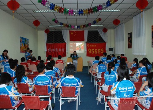 這場競賽,我們很榮幸的邀請到了奧運觀眾呼叫中心翟秦秘書長、呂克勤服務(wù)總監(jiān)、藍(lán)益民團隊建設(shè)總監(jiān)、劉忠華、楊軼副秘書長、張廣剛經(jīng)理和泰康人壽的吳江老師擔(dān)任我們的評委。在一曲激情澎湃的《歌唱祖國》拉歌聲中,拉開了決賽序幕,在正式比賽開始之前,奧組委各領(lǐng)導(dǎo)和95555駐京志愿者團隊一起觀賞了招行奧運志愿者團隊大事記的短片,短片匯集了大量同事幕后的心血,由全體志愿者活動工作照片中挑選出來的照片串聯(lián)而成,短片回顧后,我們的決賽正式開始了!