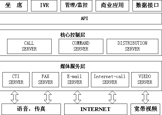 核心控制層用于對(duì)來自不同媒介的客戶進(jìn)行識(shí)別和路由,幫助企業(yè)最大限度地對(duì)每個(gè)連接加以利用,實(shí)現(xiàn)對(duì)所有客戶的全面交互管理,能夠?qū)M(jìn)入呼叫中心的語(yǔ)音呼叫、電子郵件、Web聯(lián)系和傳真通信等所有類型的多媒體交互進(jìn)行路由、通告和告警?梢詫(duì)不同的用戶、不同的聯(lián)系方式進(jìn)行統(tǒng)一調(diào)度和個(gè)性化處理,并集中進(jìn)行管理、定制和用戶來訪信息的記錄。