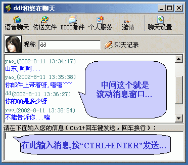 5、另外,這夢(mèng)幻尋呼DICO還將具有"短消息"和"自帶聊天室"功能,不過(guò)目前處于開發(fā)中。有了這夢(mèng)幻尋呼,以后聊天的日子就瞧好吧你!
