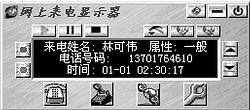 軟件簡介:主要解決用戶在撥號上網(wǎng)(不包括上網(wǎng)專線電話和部分虛擬小區(qū)用戶)的同時(shí)又不想錯(cuò)過來電的矛盾。在你上網(wǎng)時(shí)一旦有人打電話給你,您就可以通過Netcaller得知來電信息,還可給對方播放諸如“請稍候打過來,我馬上斷線”、“您的電話號碼我已知道,稍候我會打過來”、“請撥打另一個(gè)號碼xxx”,“請留言”等等語音提示。
