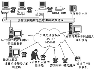 此方案使用后,以市為中心,可把周邊的各個(gè)縣、各個(gè)區(qū)聯(lián)成一個(gè)統(tǒng)一的148法律服務(wù)整體,各個(gè)縣、各個(gè)區(qū)的咨詢用戶只需要知道一個(gè)統(tǒng)一的148法律服務(wù)電話號(hào)碼,就可與最近的148法律服務(wù)臺(tái)接通進(jìn)行法律咨詢。