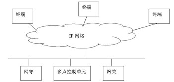 基于H.323的軟件視頻會議系統(tǒng)由相應(yīng)的協(xié)議族提供支持,使得這樣的系統(tǒng)能夠有很強(qiáng)的適應(yīng)性、兼容性。H.323建議的多媒體會議系統(tǒng)不是基于客戶服務(wù)器結(jié)構(gòu),而是基于傳統(tǒng)的電話呼叫網(wǎng)絡(luò)模式。H.323為基于網(wǎng)絡(luò)的通信協(xié)議定義了4個主要的組件:終端(Terminal)、網(wǎng)關(guān)(Gateway)、網(wǎng)守(Gatekeeper)和多點(diǎn)控制單元(MCU);就?fù)浣Y(jié)構(gòu)結(jié)構(gòu)如圖: