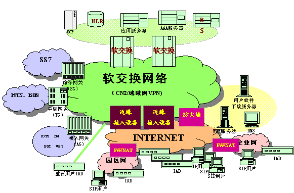 為了解決以上問(wèn)題,并考慮到IP網(wǎng)自身要徹底解決安全及QoS問(wèn)題尚需時(shí)日的現(xiàn)狀,本文在現(xiàn)有軟交換網(wǎng)絡(luò)的基礎(chǔ)上引入了新的網(wǎng)元設(shè)備,并提出了新的組網(wǎng)思路,該組網(wǎng)方案有助于軟交換網(wǎng)絡(luò)向商用化目標(biāo)推進(jìn)一步,有利于傳統(tǒng)運(yùn)營(yíng)商近期內(nèi)軟交換網(wǎng)絡(luò)的商業(yè)部署。