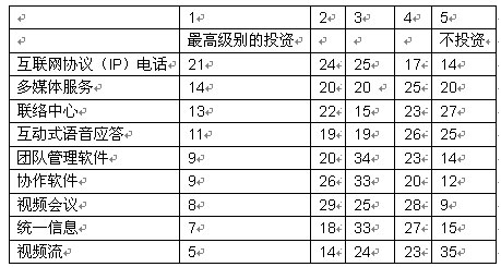 許多早期接受融合網(wǎng)絡(luò)的主要動因是為了減少語音成本。語音電話(VOIP)技術(shù)使融合網(wǎng)絡(luò)環(huán)境中的這一切都成為可能。語音電話實現(xiàn)了互聯(lián)網(wǎng)上的呼叫路由,繞過公共交換電話網(wǎng)絡(luò)(PSTN)進(jìn)行傳輸,從而避免了昂貴的費用。我們的調(diào)查顯示,大部分公司將會在中短期內(nèi)把投資重點集中在融合網(wǎng)絡(luò)應(yīng)用上。