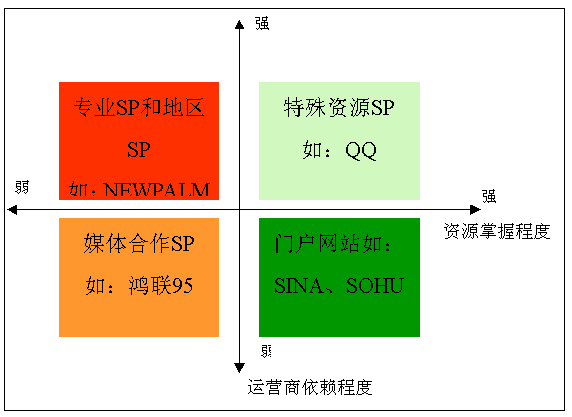 通過提供網(wǎng)絡服務產(chǎn)生強大流量帶動無線業(yè)務發(fā)展,業(yè)務收入主要來源網(wǎng)站推廣,產(chǎn)品常圍繞自有網(wǎng)絡內(nèi)容策劃、主要收入來自圖鈴、社區(qū)等網(wǎng)絡特點鮮明的業(yè)務:搜狐、新浪、網(wǎng)易、TOM;