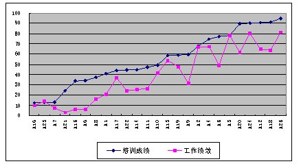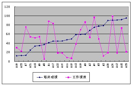 我們通過分析,圖3顯示,員工的培訓成績和其工作績效是無關的,這說明培訓是無效的。無效的原因也許是由于培訓內容不合理或培訓組織實施不善等原因,總之培訓是無效的,需要改進。