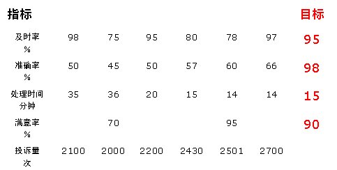 從滿意度的角度來看:5月份的指標值已達到目標值95%的要求,但只統(tǒng)計了2月份和5月份兩個月的數據,數據收集不完整,因此,我們對該指標無法評價(一般認為對三個以下的數據無法做出評價)。