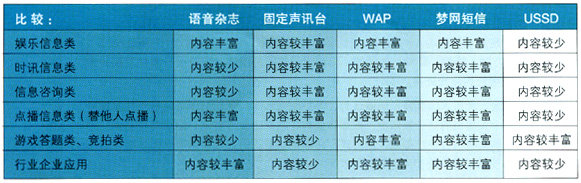 - 游戲答題和競拍類業(yè)務,雖然IVR有一定優(yōu)勢,但業(yè)務范圍較窄,同時受外界約束較強,應該定位于IVR發(fā)展的非重點業(yè)務。