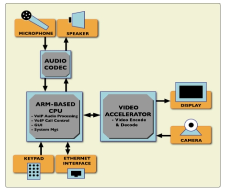 自從第一代的IP可視電話推出以來,通用應(yīng)用處理器的處理能力已經(jīng)提高到能將所有通常用DSP實(shí)現(xiàn)的語音處理器任務(wù)由應(yīng)用處理器實(shí)現(xiàn)。特別對(duì)于Wi-Fi可視電話市場(chǎng)來說,這是一個(gè)非常重要的進(jìn)步,因?yàn)闊o線連接的設(shè)備基本的需求是降低功耗,最大化電池壽命。