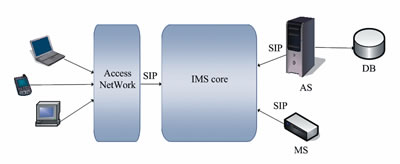 IMS網(wǎng)絡選擇SIP協(xié)議作為呼叫控制協(xié)議,選擇Diameter協(xié)議為運行AAA(認證、授權、計費)功能的協(xié)議,在網(wǎng)絡安全方面采用IPSec技術和TLS安全傳送協(xié)議。IMS體系結構包括應用層平面、控制層平面、媒體層平面3個部分。應用層包括了多種類型的應用服務器,這些主持和執(zhí)行服務的SIP實體,可操作在SIP代理模式、SIPUA模式和SIPB2BUA模式下。應用層為用戶提供多媒體業(yè)務,它獨立于網(wǎng)絡的接入層、核心控制層存在,能保證業(yè)務開發(fā)和提供的獨立性?刂茖犹幚頃捫帕,由不同的功能實體來處理信令流,x-CSCF(呼叫會話控制功能)、HSS(歸屬用戶服務器)、MGCF(媒體網(wǎng)關控制功能)、MRFC(媒體資源功能控制器)等實體協(xié)同操作,提供用戶的統(tǒng)一認證、呼叫控制、策略管理、漫游和計費等功能。媒體層作為一個媒體宣告服務器,直接在用戶之間、用戶和IMS媒體功能(如媒體資源控制處理器MRFP)之間傳輸媒體流。