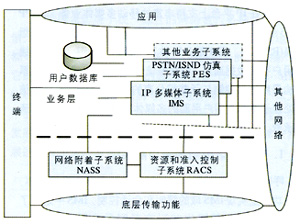- PSTN/ISDN仿真子系統(tǒng)(PES):為經(jīng)過網(wǎng)關連接到IP網(wǎng)的傳統(tǒng)電話終端仿真PSTN/ISDN網(wǎng)絡,保證傳統(tǒng)PSTN/ISDN業(yè)務的可用性和一致性,使得終端用戶不會意識到其實并沒有連接到PSTN/ISDN網(wǎng)絡。