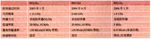 表1 802.16系統(tǒng)各標準特點
