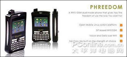 很多技術(shù)分析人士都認(rèn)為,VoWiFi的下一波功能將主要集中在雙模手機上,即手機擁有Wi-Fi IP電話功能和普通蜂窩電話功能。當(dāng)用戶位于家中、辦公室或公共Wi-Fi熱點區(qū)域,可以使用Wi-Fi IP電話功能進(jìn)行通話,而在沒有Wi-Fi網(wǎng)絡(luò)的地區(qū),則可以使用傳統(tǒng)的蜂窩網(wǎng)絡(luò)進(jìn)行通話。不論采用哪種網(wǎng)絡(luò),用戶的手機號碼是唯一的。由于通過Wi-Fi網(wǎng)絡(luò)撥打IP電話的費用要低于現(xiàn)有的固定電話,因此未來這種電話很可能會取代大部分用戶目前使用的固定電話。下圖為GUPP公司最新推出的VoWiFi/GSM雙模Linux智能手機PHREEDOM