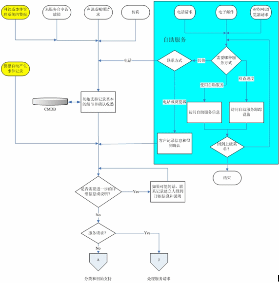 在記錄流程之后,事件將經(jīng)過(guò)分類和初始支持流程,而服務(wù)請(qǐng)求則被傳遞到“服務(wù)請(qǐng)求處理”流程。