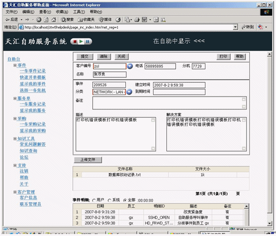 事件記錄應(yīng)該在某個(gè)服務(wù)臺(tái)工具中記錄和跟蹤,該工具最好是作為集成的服務(wù)管理工具集的構(gòu)成部分。該工具應(yīng)該在引發(fā)新的事件時(shí)提供最基本的事件記錄。比如為了幫助提高效率,當(dāng)你在天匯幫助臺(tái)的用于記錄事件的事件窗口中輸入請(qǐng)求發(fā)起者的姓名時(shí),利用客戶數(shù)據(jù)庫(kù)可以自動(dòng)填充諸如位置、部門和聯(lián)系詳細(xì)信息等字段。天匯幫助臺(tái)還支持使用計(jì)算機(jī)電話集成