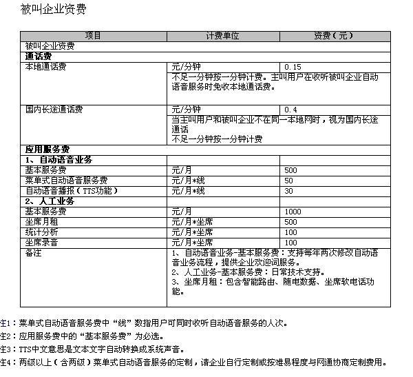 被叫企業(yè)通話費和應用服務費按虛擬呼叫中心業(yè)務資費執(zhí)行,主叫通話費依然免費。