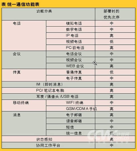 ”、“智能通信”和“統(tǒng)一溝通”等,盡管每個廠商所給出的定義均有些細(xì)微的差別,但總體來看,其核心內(nèi)容就是指將現(xiàn)在各種溝通方式進行融合,目的是讓人們無論是在任何時間、任何地點,都可以通過任何設(shè)備、任何網(wǎng)絡(luò)實現(xiàn)自由的溝通。目前常用的溝通方式有電話、傳真、短信、email、Web會議、視頻會議、語音信箱、IM軟件、協(xié)同工作平臺等等,這些溝通方式覆蓋了電信、IT和互聯(lián)網(wǎng)三大領(lǐng)域,因此統(tǒng)一通信是這三大領(lǐng)域逐步發(fā)展、自然融合的結(jié)果。