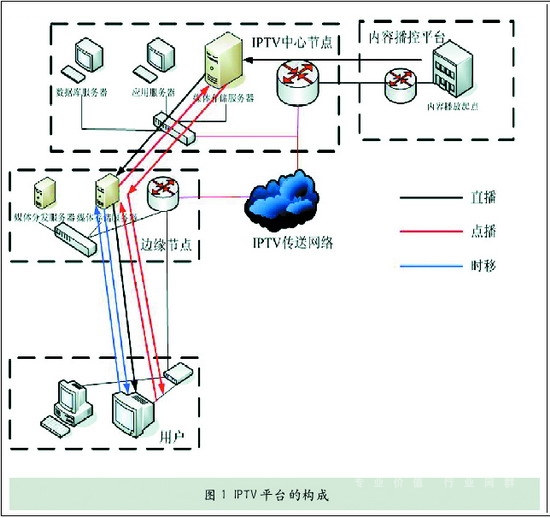 圖1中采用的是兩級架構(gòu),實(shí)際部署中,IPTV平臺可以采用多級架構(gòu),以減輕IPTV中心平臺的壓力,否則所有的時移電視、點(diǎn)播節(jié)目全部存放在中心平臺會嚴(yán)重影響用戶的收看質(zhì)量。