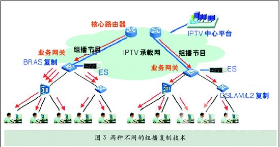 BRAS和DSLM都可以很好地解決組播問題。但由于BRAS在DSLAM的上層,因此如果采用BRAS組播方式,其特點(diǎn)是投資相對較少、控制較為方便,但是下層從BRAS到DSLM,用戶終端的帶寬占用較大。如果采用DSLAM組播方式,其特點(diǎn)是投資相對較多,控制較復(fù)雜,但是下層從BRAS到DSLM,用戶終端的帶寬占用較小。因此要根據(jù)各地具體情況來決定采用在何處進(jìn)行組播復(fù)制。但無論如何,組播復(fù)制要確保不能影響用戶的收看質(zhì)量。