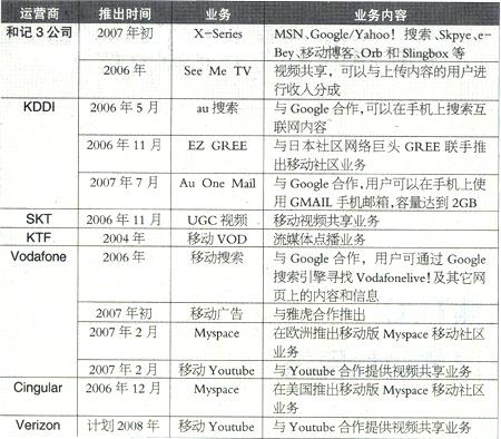 全球主要移動運營商推出的新型移動互聯(lián)網(wǎng)業(yè)務