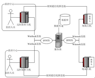 本系統(tǒng)基于瘦客戶(hù)端的C/S模式,在體系結(jié)構(gòu)上采用以服務(wù)器為中心的星型結(jié)構(gòu),創(chuàng)新性地把監(jiān)控現(xiàn)場(chǎng)端和監(jiān)控中心端C角色化。即在本系統(tǒng)中所有的監(jiān)控現(xiàn)場(chǎng)端和監(jiān)控中心端相對(duì)整個(gè)系統(tǒng)的架構(gòu)而言都是客戶(hù)端,它們的通信都需要經(jīng)過(guò)服務(wù)器的驗(yàn)證中轉(zhuǎn)。同時(shí),監(jiān)控中心使用者的登錄由于這種架構(gòu)模式,也必須要經(jīng)過(guò)服務(wù)器的驗(yàn)證才能成功登錄,進(jìn)而獲得監(jiān)控的權(quán)利。