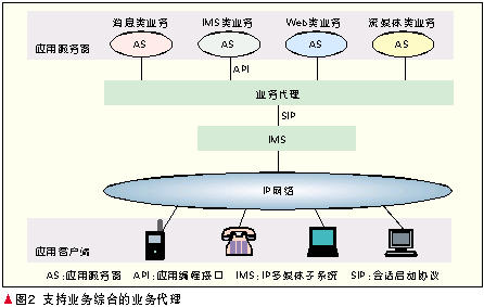 經(jīng)過(guò)多年的探索,業(yè)界取得共識(shí)網(wǎng)絡(luò)演進(jìn)必須基于業(yè)務(wù)驅(qū)動(dòng)的策略。必須指出的是,雖然基于SIP技術(shù)的IMS支持的業(yè)務(wù)從語(yǔ)音業(yè)務(wù)擴(kuò)展到了寬帶多媒體業(yè)務(wù),然而其控制機(jī)理本質(zhì)上還是源于傳統(tǒng)電信網(wǎng),因此它最適合于提供的還是諸如VoIP、集群話(huà)音、集群視頻等實(shí)時(shí)會(huì)話(huà)型業(yè)務(wù),諸如Web、電子商務(wù)等純數(shù)據(jù)型業(yè)務(wù)并不適合由IMS提供,其他許多有前景的業(yè)務(wù),如流媒體業(yè)務(wù)、IPTV、消息類(lèi)業(yè)務(wù)等的確IMS已提出或正在積極研究其提供方法,但是已有其他的非IMS提供方式。因此,切不要認(rèn)為IMS是包羅萬(wàn)象的,更確切地說(shuō),IMS是電信界提出的網(wǎng)絡(luò)融合技術(shù),考慮得更多的必然就是和傳統(tǒng)電信業(yè)務(wù)模式類(lèi)似的業(yè)務(wù)。為了使IMS在未來(lái)融合的信息通信網(wǎng)絡(luò)中繼續(xù)保持其重要的地位,在積極研究擴(kuò)大IMS業(yè)務(wù)能力的同時(shí),必須研究新的體系結(jié)構(gòu)既能夠包容IMS型業(yè)務(wù),也能夠包容非IMS型業(yè)務(wù),由此形成融合的開(kāi)放式的業(yè)務(wù)平面。這就是熱點(diǎn)研究之中的業(yè)務(wù)代理技術(shù),實(shí)際上就是架構(gòu)在IMS之上的綜合業(yè)務(wù)平臺(tái),如圖2所示。它至少能夠提供4大類(lèi)業(yè)務(wù):IMS類(lèi)業(yè)務(wù)、消息類(lèi)業(yè)務(wù)、流媒體業(yè)務(wù)、Web業(yè)務(wù)以及它們的組合,也就是說(shuō),除了IMS系統(tǒng)的SIP協(xié)議和API以外,業(yè)務(wù)平臺(tái)還應(yīng)能支持其他眾多的非IMS系統(tǒng)協(xié)議和接口,由此構(gòu)成融合的業(yè)務(wù)層。IMS系統(tǒng)是其中的一個(gè)重要組成部分,擔(dān)負(fù)起通信網(wǎng)絡(luò)的融合重任。