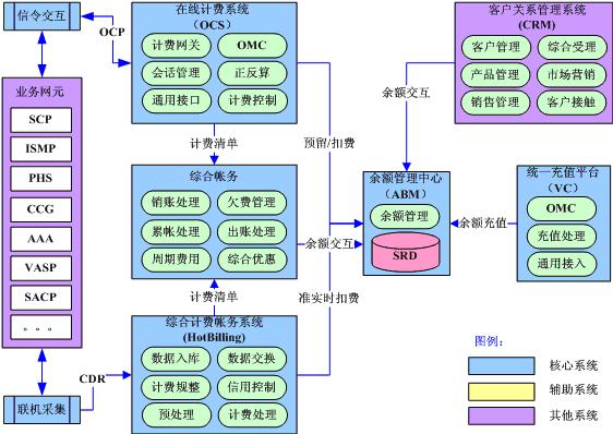在線計(jì)費(fèi)系統(tǒng)通過實(shí)時信令交互實(shí)現(xiàn)對高風(fēng)險和高價值業(yè)務(wù)的實(shí)時計(jì)費(fèi);綜合計(jì)費(fèi)帳務(wù)系統(tǒng)通過準(zhǔn)實(shí)時話單采集實(shí)現(xiàn)對后付費(fèi)用戶的準(zhǔn)實(shí)時計(jì)費(fèi);綜合帳務(wù)系統(tǒng)實(shí)現(xiàn)全業(yè)務(wù)的綜合優(yōu)惠和帳務(wù)處理;獨(dú)立的余額管理中心實(shí)現(xiàn)對電信余額的統(tǒng)一管理,未來將成為電信的“內(nèi)部銀行”;統(tǒng)一充值平臺實(shí)現(xiàn)全網(wǎng)全業(yè)務(wù)的統(tǒng)一充值支付。