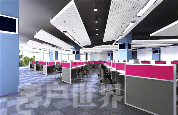 在這個(gè)環(huán)節(jié),我想和大家分享一些我們剛剛完成的設(shè)計(jì)圖片,可以更直觀的感受色彩在呼叫中心空間中的重要性。