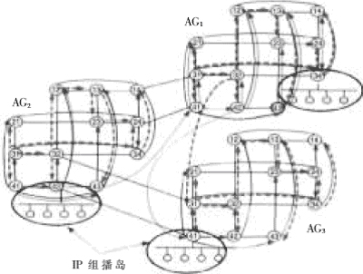 中AG2的a24與AG1的a41之間的連線。各排列圖之間的連線在混合式組播中并不一定作為數(shù)據(jù)傳輸路徑。