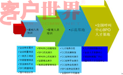 自然,首先得有人才的生產(chǎn)活著吸引能力,也就是意味著產(chǎn)業(yè)園區(qū)周邊有大量的相關(guān)院校,或者產(chǎn)業(yè)園區(qū)具有非常強(qiáng)的吸引外地人才的能力(例如北京),然后才談到人才的培養(yǎng),揚(yáng)州技師學(xué)院首設(shè)“呼叫專業(yè)”成為行業(yè)內(nèi)一個(gè)亮點(diǎn),事實(shí)上,北京早在2年前已經(jīng)在開展試點(diǎn)的工作了。關(guān)于人才解決方案以及人員的培訓(xùn),下面的這張圖表述更加淋漓盡致: